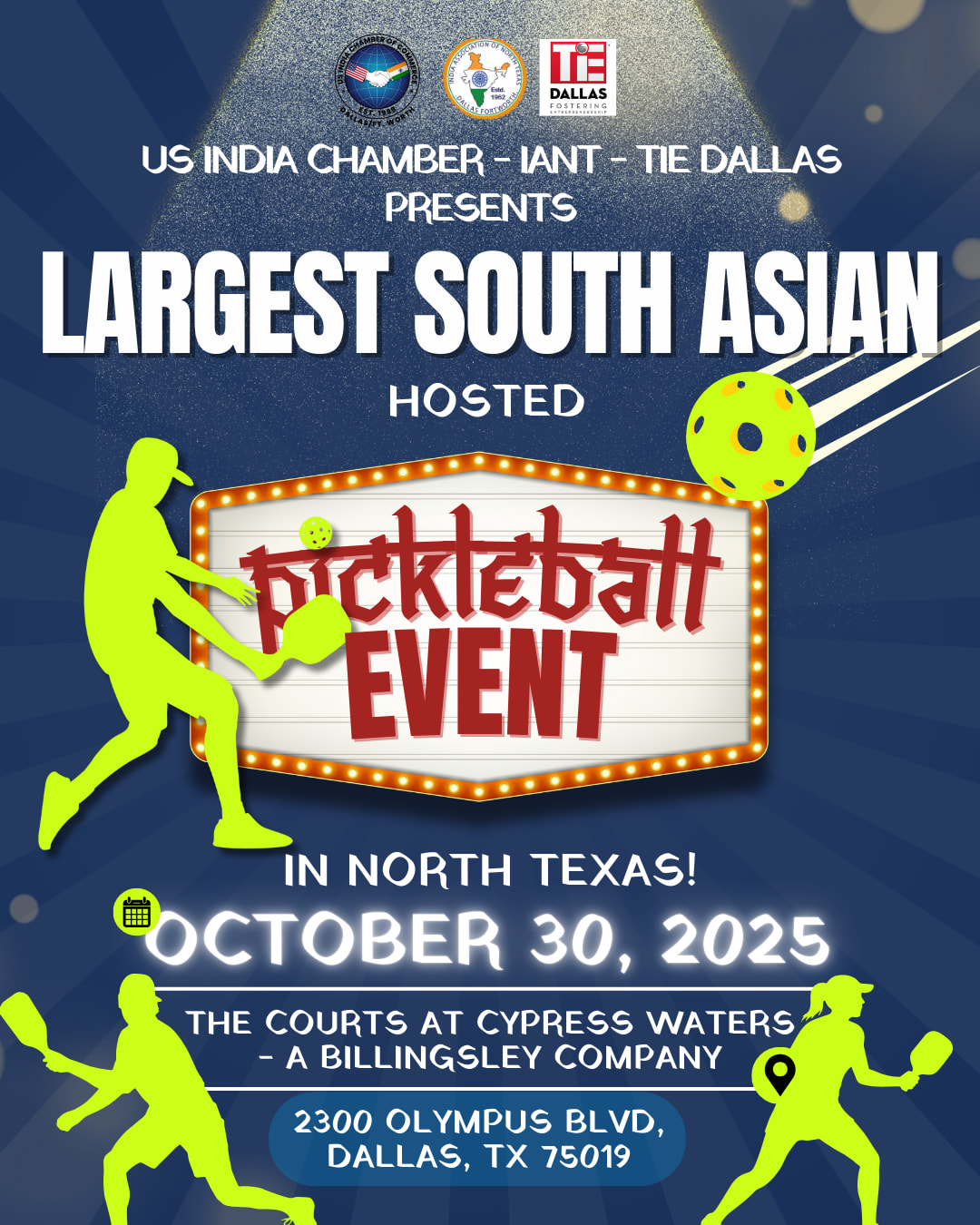 You're right. It will be a sold-out evening to remember - a chance for you to show off your pickleball skills, sing along to Bollywood tunes, and of course network with the most amazing group of people you will meet!
